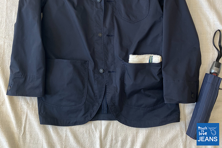 撥水ストレッチジャケットは、じつは、タッチイズラブジーンズが日頃、苦手としている、スポーツブランドのシューズやアパレルとの、相性が良いアイテムです。