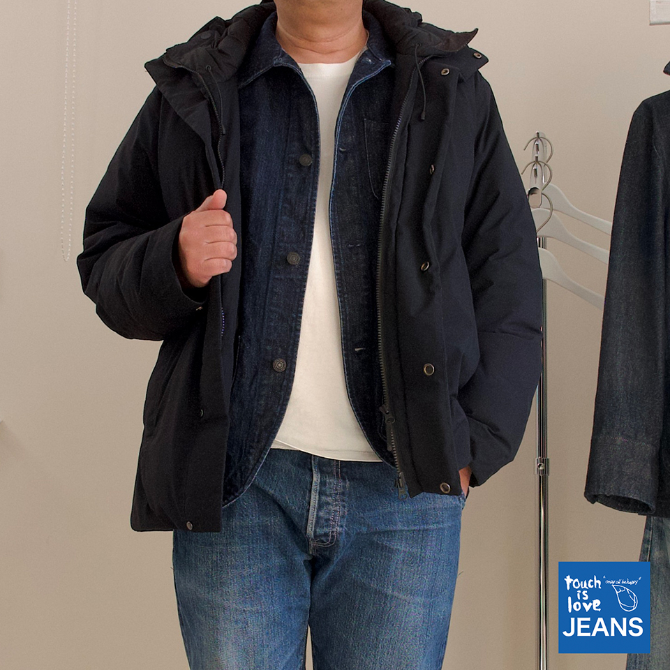 なので、Tシャツ+デニムジャケット+ダウンっていう組み合わせで着てね。