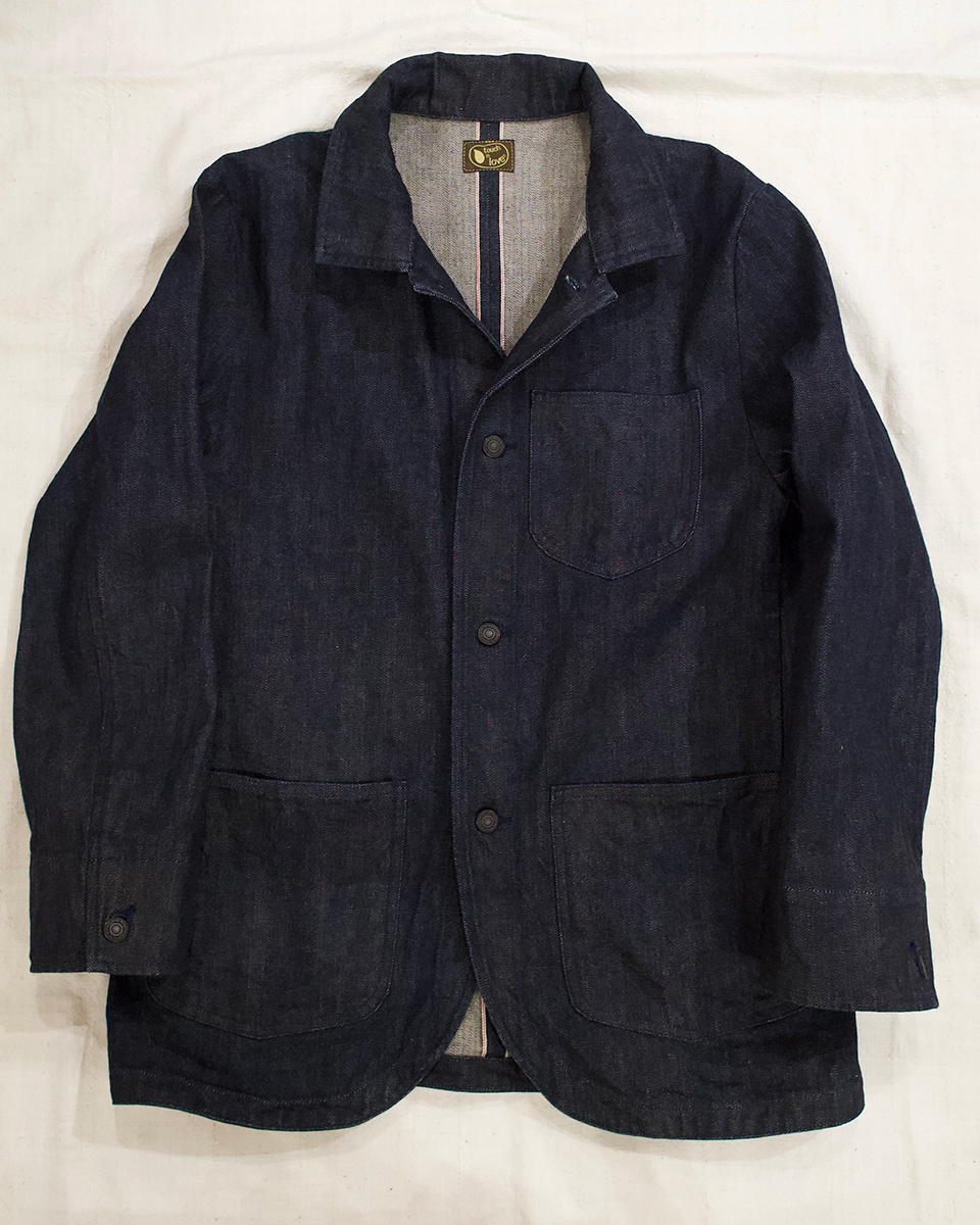 オーダーから3ヶ月ほどで出来上がります、濃色シャトルデニムのジャケットは税込44,000円。家で洗濯可能、洗えば洗う程味の出る「育てる系ジャケット」です。お問い合わせ、ご来店、お待ちしております。