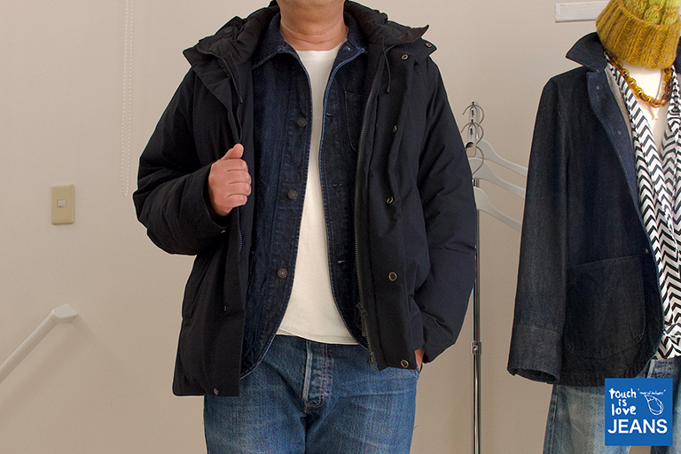 A.もったいない言葉をありがとうございます、恐縮です。「それは生地が、14ozとカバーオール型のジャケットにしては重めのしっかりしたシャトルデニムだから」です。この事が、前見頃に加え、ポケットに入れた物を安定させます。