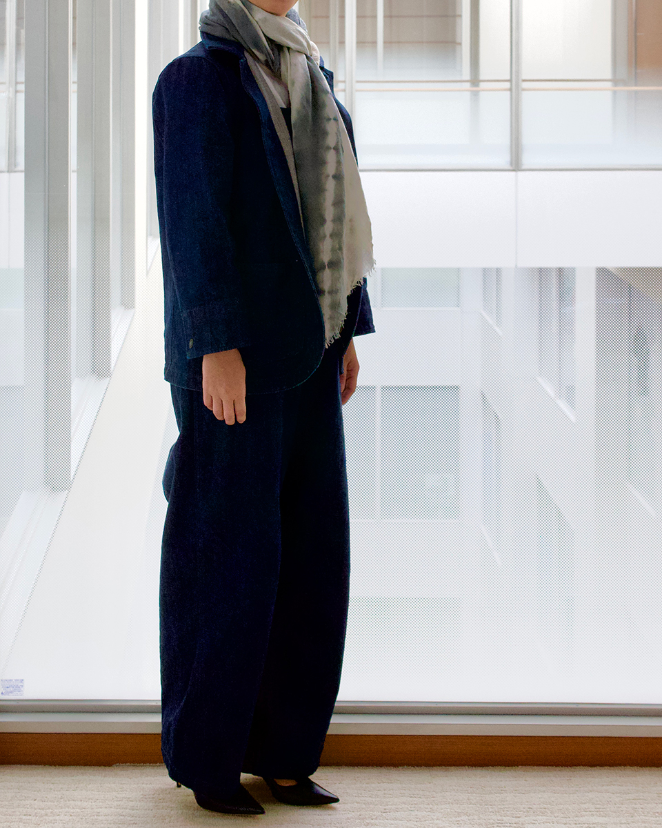 レギュラーフィットのストレートの形ですが、女性の方にも好評をいただいています。